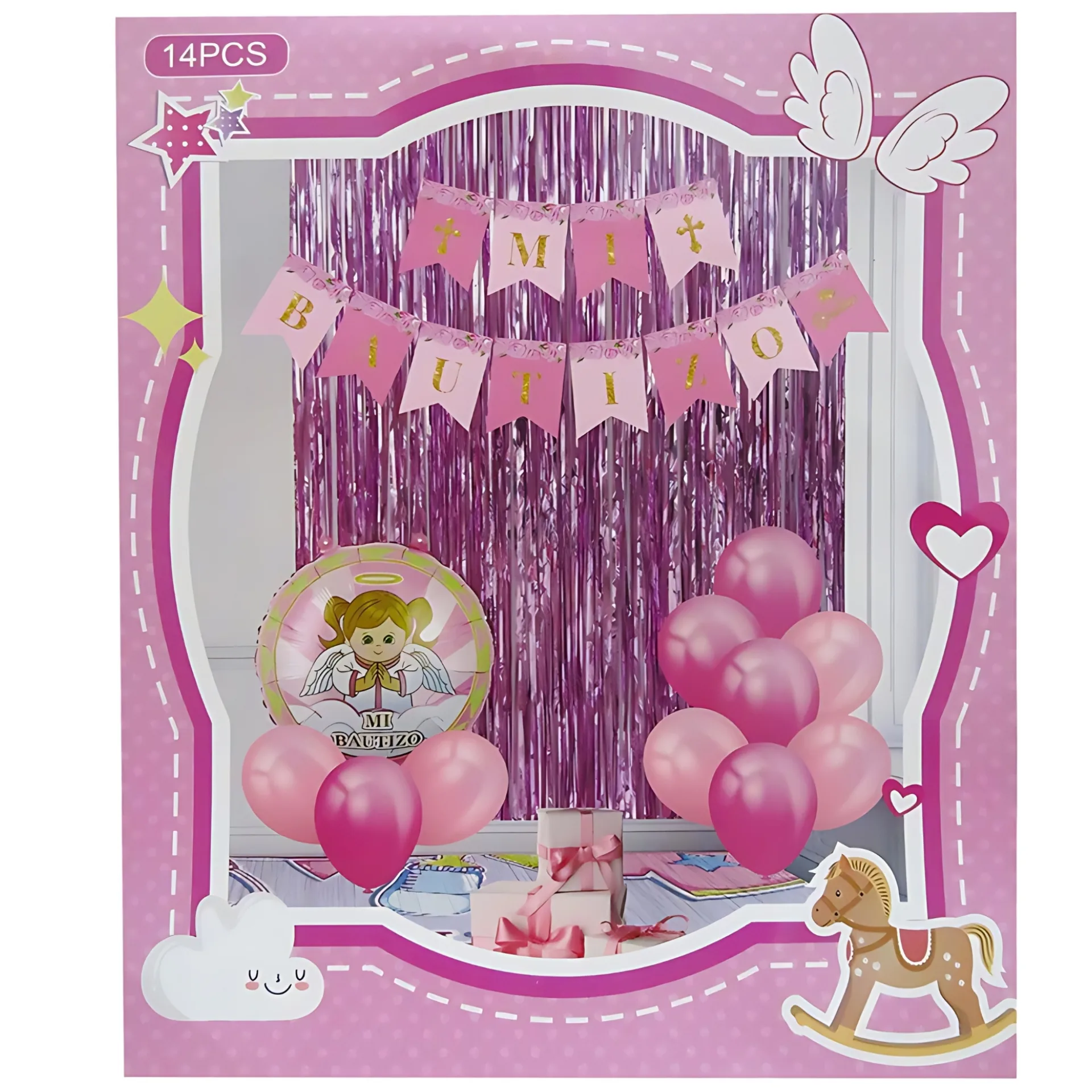 SET DECORACION BOUQUET MI BAUTIZO ROSA