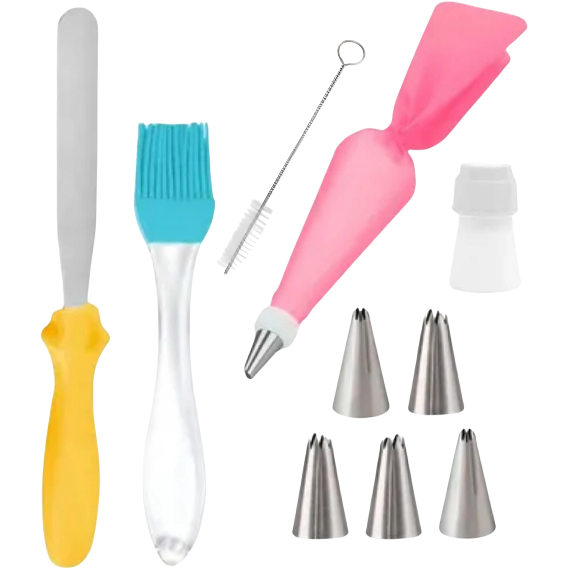 Incluye: espátula, pincel, cupla, manga de silicona, 5 picos intercambiables y cepillo de limpieza