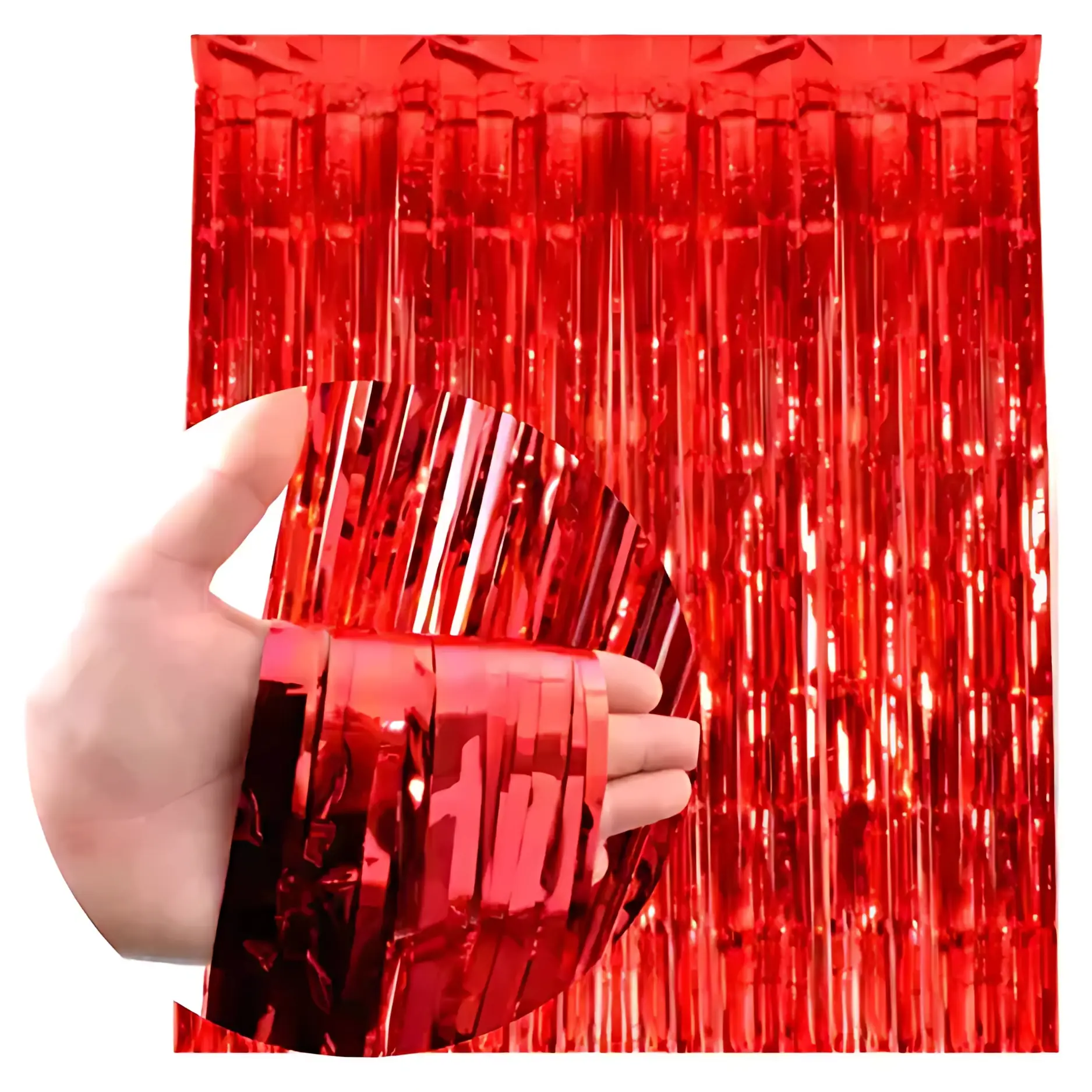 CORTINA METALIZADA ROJO X12 UNIDADES